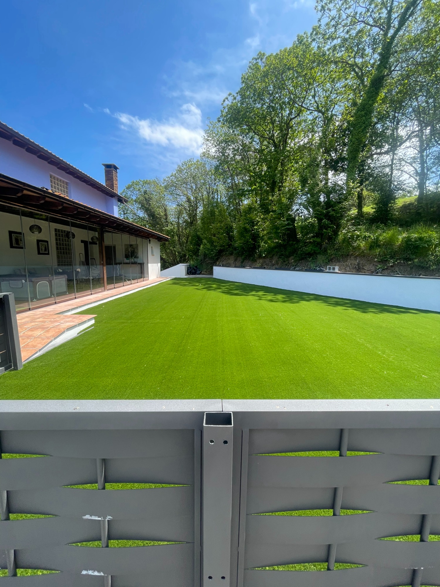 Garantizamos un acabado natural , resistente y de fácil mantenimiento , para que disfrutes de tu jardin verde durante todo el año , sin riegos ni complicaciones
